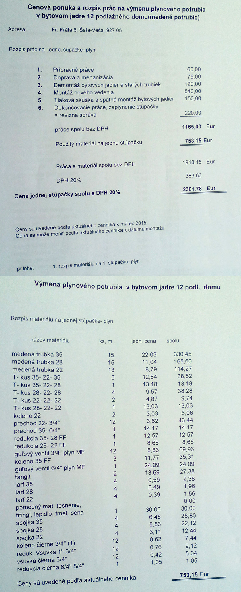 2011 - 2012 - Výmena hlavného prívodového potrubia pre studenú vodu po havárii a úhrada vody a kanalizačného pre ZsVaK